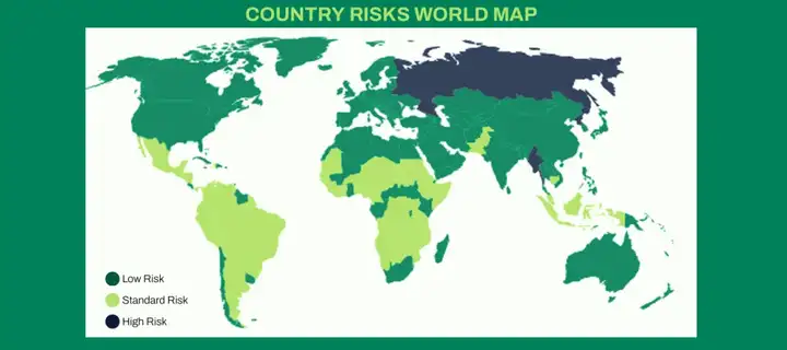 >>> 地域范围:全球所有向欧盟出口相关产品的国家/地区,欧盟已将全球划分为低、标准、高三类风险等级(中国为低风险国家)。
